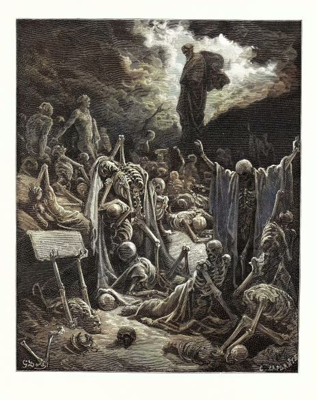 事实上,在「平原遍满骸骨的预言」,先知以西结显示了以色列人感到复国的绝望。在一个异像中,他看见平原上枯干的一大堆骸骨头 (代表四散天下的以色列人),神问他:「人子啊,这些骸骨能活过来吗?」